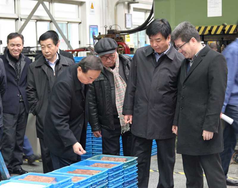近日,寶雞市市長惠進才、市政府秘書長張海建、工信局局長毛躍利、市統計局局長張寧等領導一行,在公司領導李軍望、李波的陪同下,前往A產品事業部、零件事業部生產現場開展了調研工作。(丁永剛)