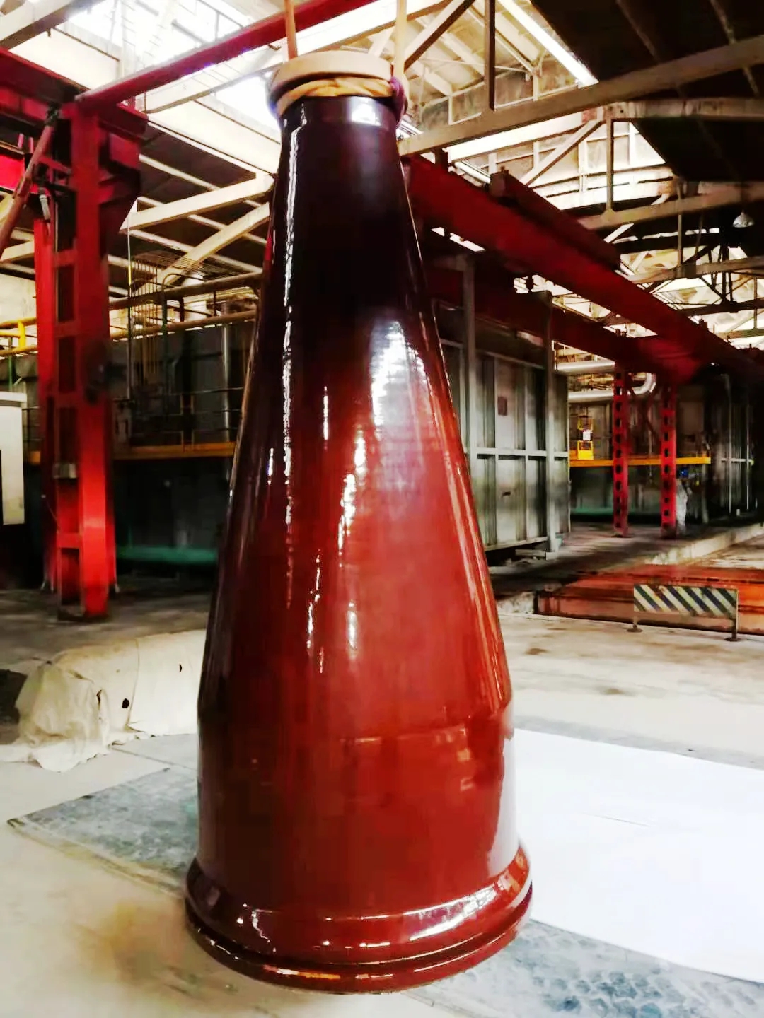 本次研制的2000kV變壓器電容套管將應用于目前世界上電壓等級最高的試驗變壓器,對1100kV特高壓電氣設備產品進行各項嚴格的電氣性能試驗。這種試驗方法屬于國內首次,相比常規產品,試驗要求及質量控制更加苛刻。同時,該產品為超大尺寸、薄壁、錐度大、易變形的炮彈式結構,僅毛坯重量就接近8噸,整個制造過程采用濕法產線生產,因突破了很多設備的極限,成型極其困難。在毛坯擠制、轉運、陰干、修坯、干燥、上釉、燒成、切割研磨各工序,均存在不同程度困難與挑戰。